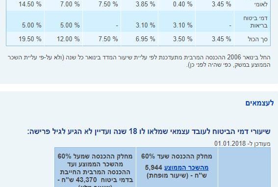 ביטוח לאומי: כ 300 ש"ח (5.97% במדרגה הנמוכה)